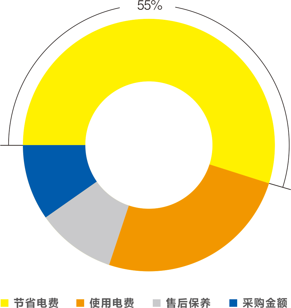 ZLS-2i二級壓縮系列螺桿式空氣壓縮機,以超過國家標準近6%的成績通過能效檢測,更獲得國家工信部節能目錄認證,成功取得國家能效之星標識。對于一家每年使用8000小時的用戶來說,使用我司的ZLS-2i二級壓縮空壓機,如果該用戶當地的電費為每度0.8元,同等功率下同比一臺剛跨入一級能效門檻的空壓機,則每年可節省的電費達6萬元。同等功率下同比一臺普通二級能效的空壓機,每年更可節省的電費高達8萬元!